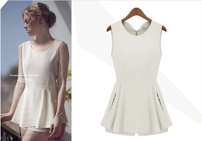 2014年春季裙式雪纺衫V领修身显瘦短袖T恤