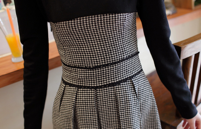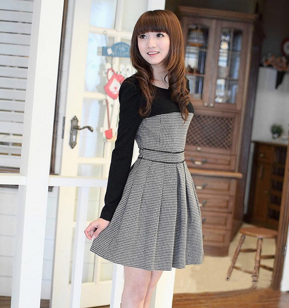 韩国正品小香风长袖气质名媛修身打底公主连衣裙