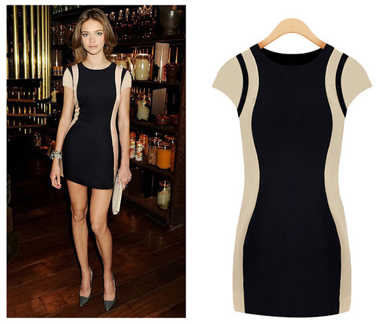 性感修身V领短袖包臀打底连衣裙