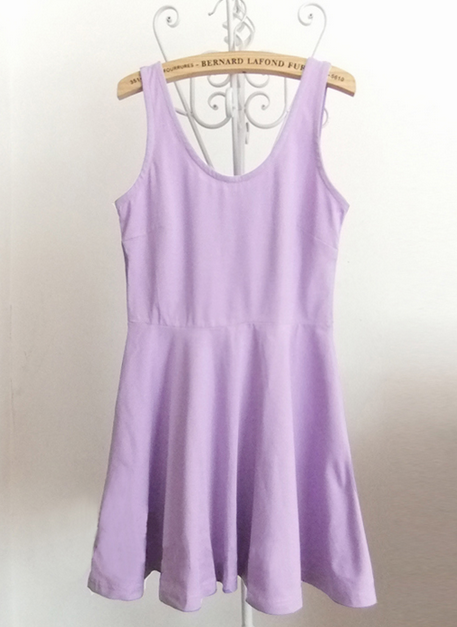 2014时尚流行小草花后背交叉无袖圆领连衣裙