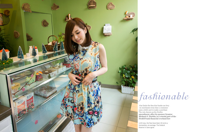 2014年春季衬衣领印花无袖连衣裙